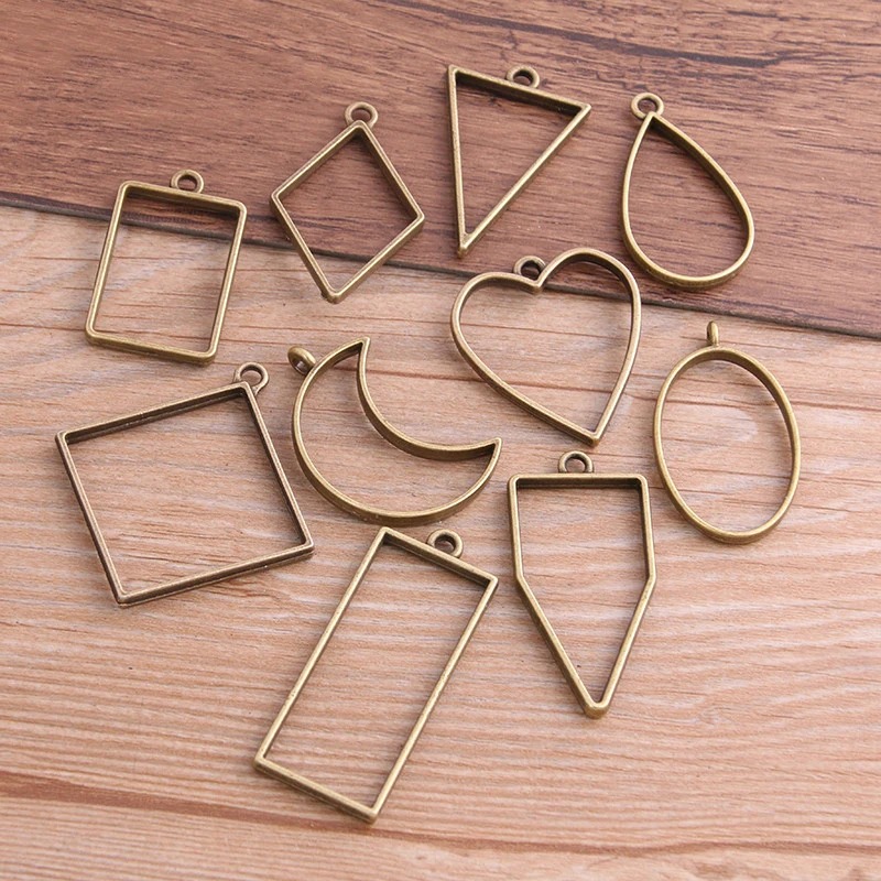 10 stks/30 stks Geometrische Figuur Charme Holle Lijm Lege Hanger Metaallegering DIY Armband Ketting Oorbellen Handgemaakte Bezel Mold