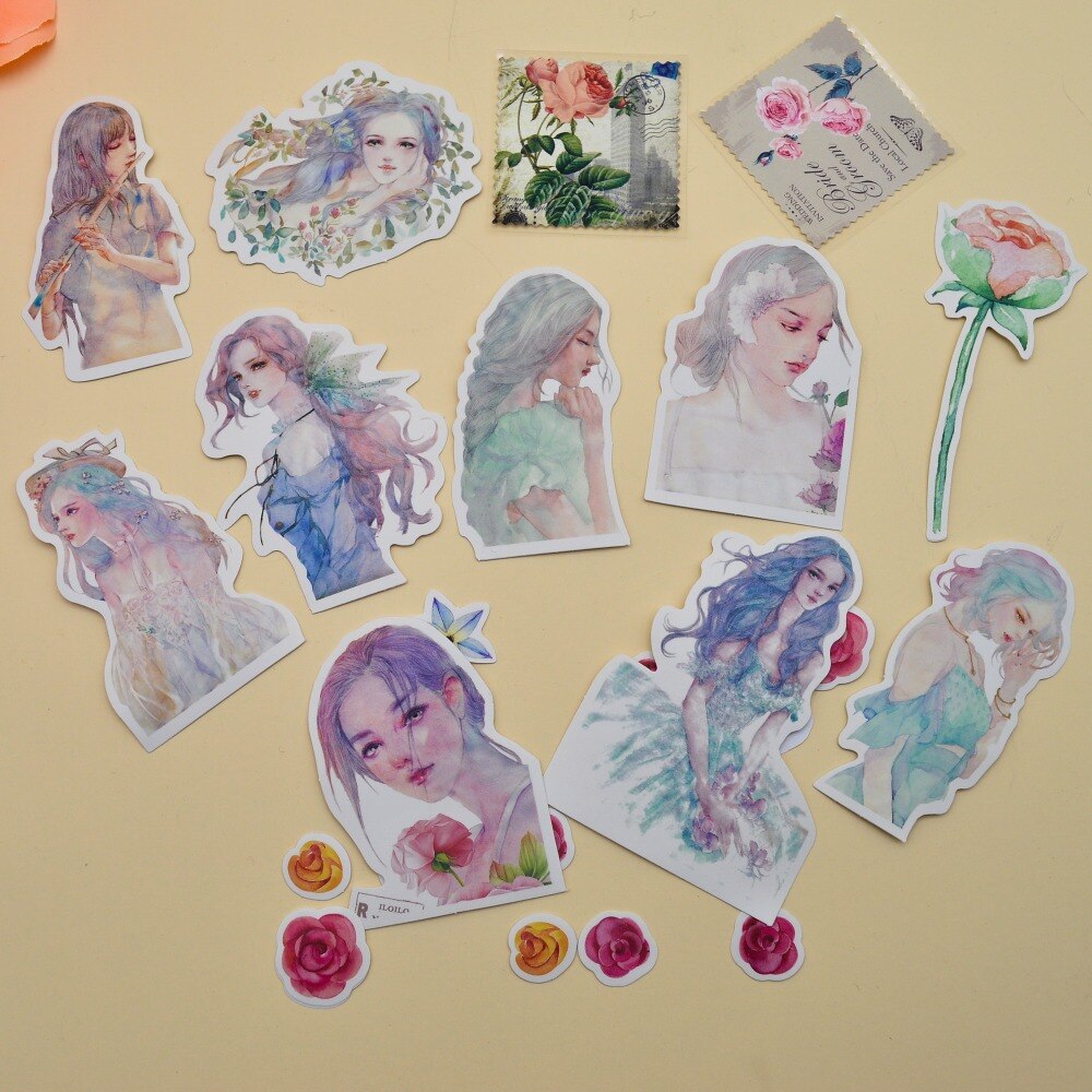 10 stuks kawaii aquarel stijl mooie meisjes sticker zelfgemaakte bloemen papier s/