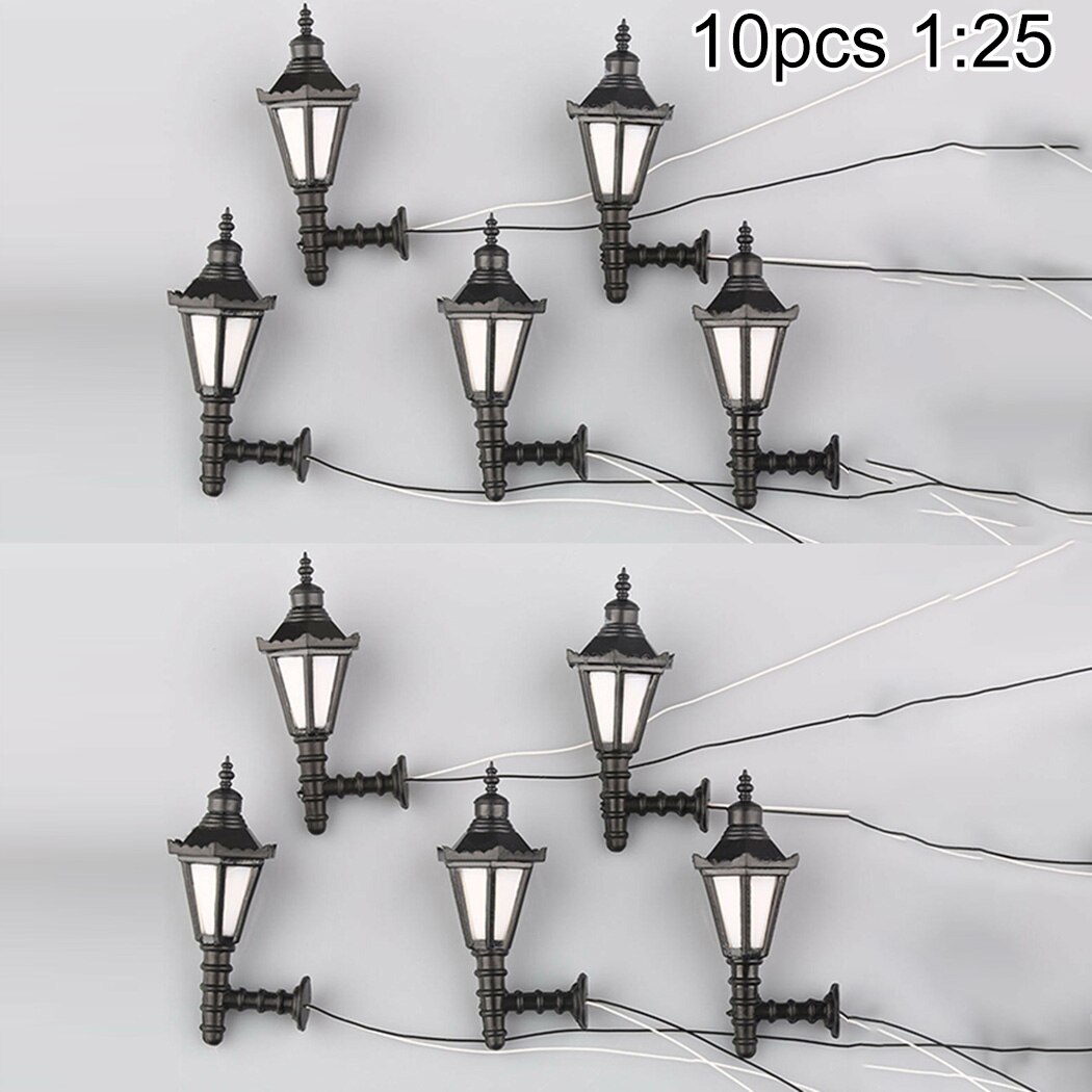 10Pcs Trein Spoorweg Park Led Lantaarnpaal Lampen Wandlampen Model Schaal 1:25 3V Model Tuin Lampen Miniatuur Lanscape