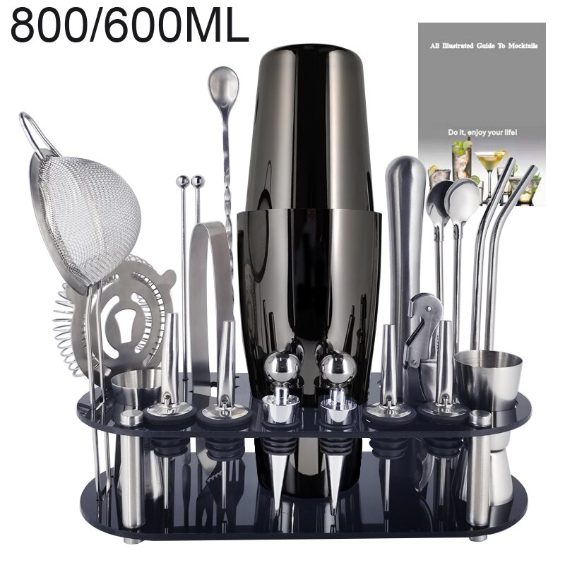 1-22Pcs Boston Cocktail Shaker Bar Gereedschap Wijn Mixer Set Barman Cocktail Shaker Tool Kit Schenker Jigger Warhoofd met Houder