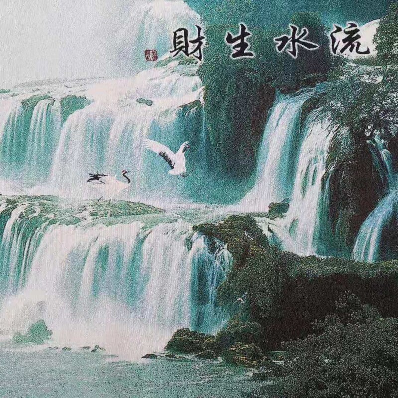 160 x 60cm / chinees zijde borduurwerk landschapsschilderij - prachtig chinees landschapslandschap met waterval en kranen