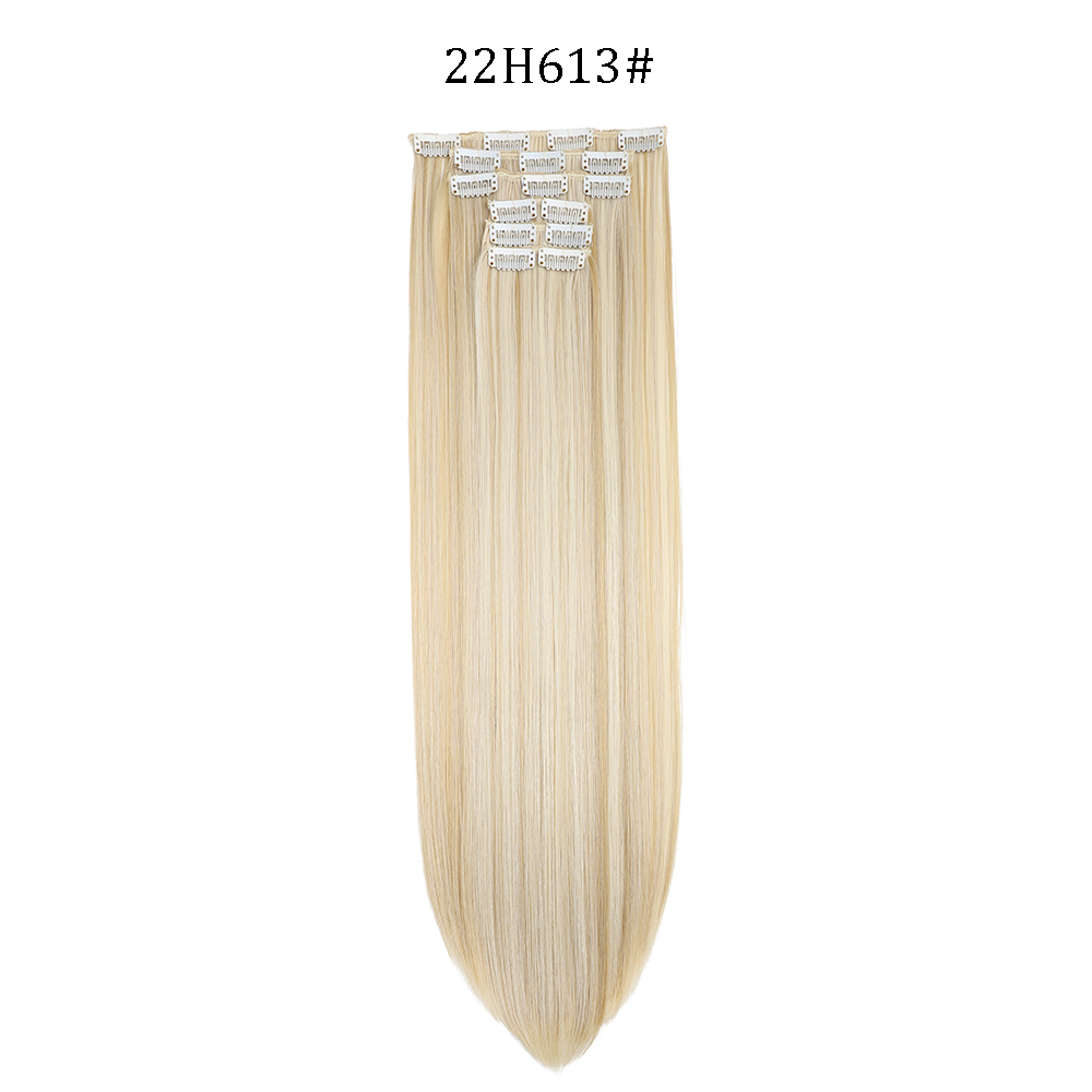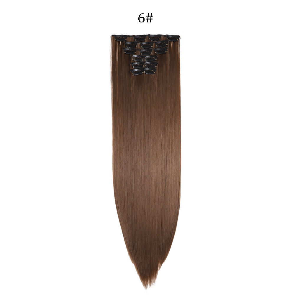 24 inch Synthetische Lange Rechte Kapsel 16 Clips 6 stks/set Hair Extensions Blond Zwart Haarstukjes Hittebestendig Voor Vrouwen