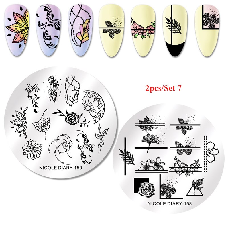 2Pcs Nicole Dagboek Nail Stempelen Platen Lente Bloem Rechthoek Rvs Nail Image Stencils Stempelen Template Tool
