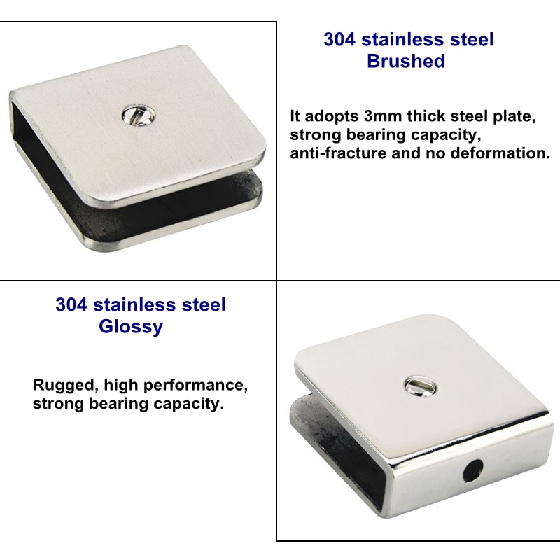 304 Roestvrij Staal Glas Klem Douche Deur Clip Houder Beugel Ondersteuning Vaste Panel U-Klem Vierkante Klem Voor 8 ~ 10 mm Glas