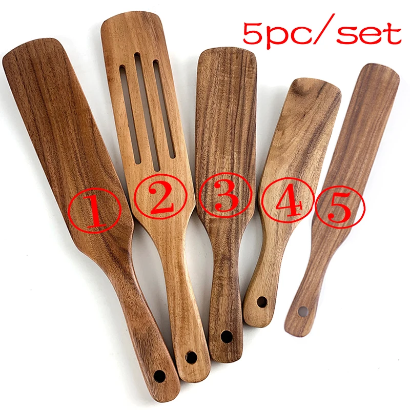 7 Stks/set Teak Natuurlijke Houten Servies Lepel Pollepel Turner Rijst Vergiet Soep Skimmer Koken Lepel Scoop Keuken Herbruikbare Tool Kit