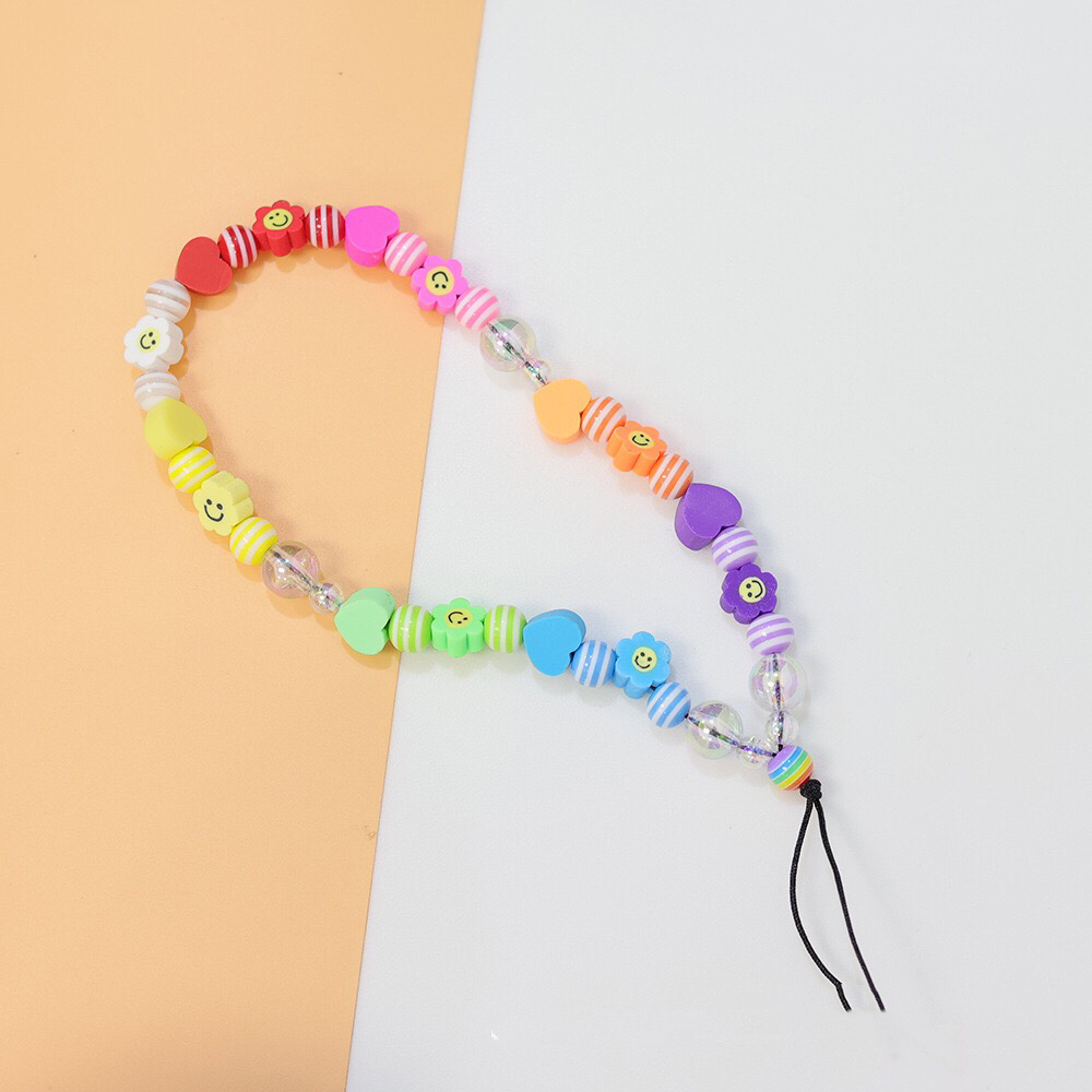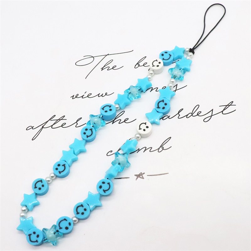 Blauwe Ster Bohemian Kleurrijke Zachte Klei Mobiele Telefoon Keten Voor Vrouwen Acryl Regenboog Keramische Liefde Kristal Kralen Mobiele ph