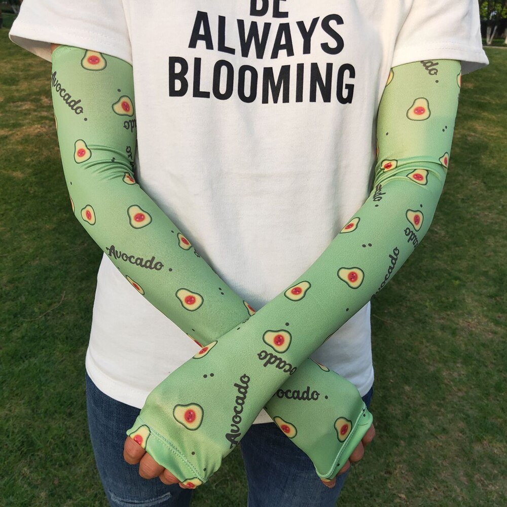 Dames arm mouwen ijs zijde koud fruit bloemen print zonnehandschoenen halve vinger auto armwarmers sport zonnebrandcrème mouw