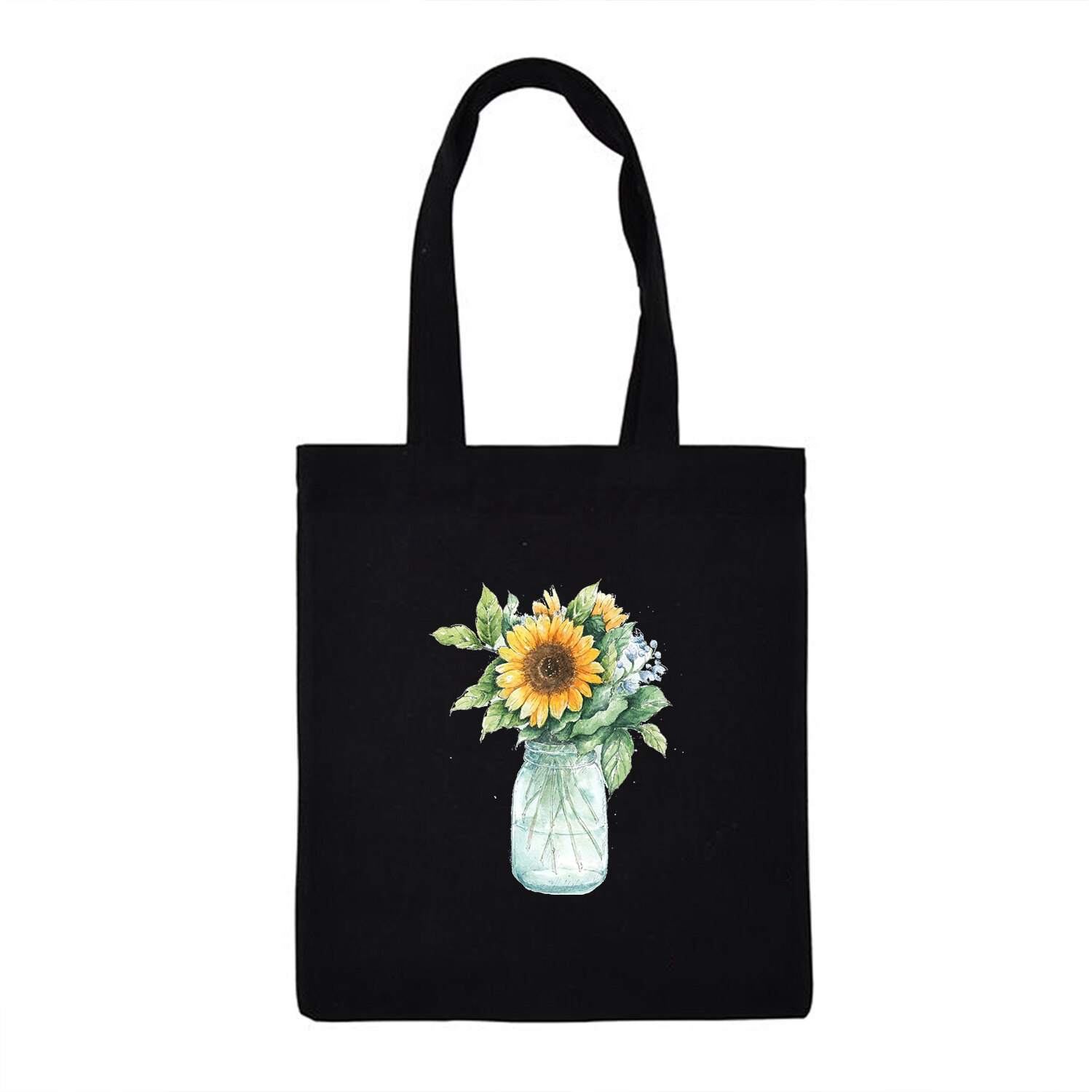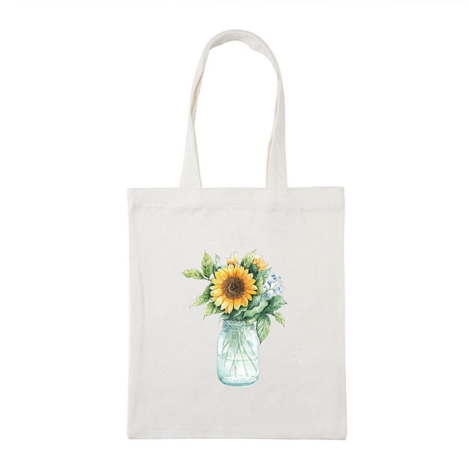 Dames boodschappentas dames canvas schoudertas eco tas herbruikbare tas shopper tassen studenten boekentas bloem plant melodie