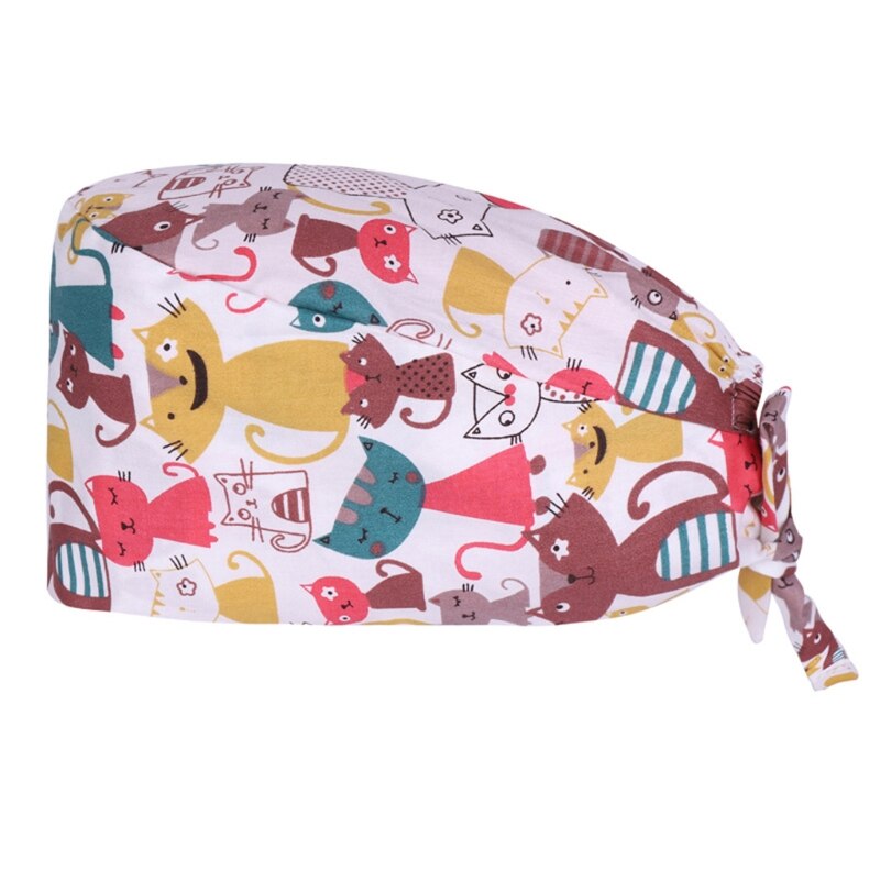 Dokter verpleegkundige katoenen werkmuts met zweetband verstelbare strik op de rug schattig cartoon dierenpatroon kalebasvormige bouffant scrub hoed h