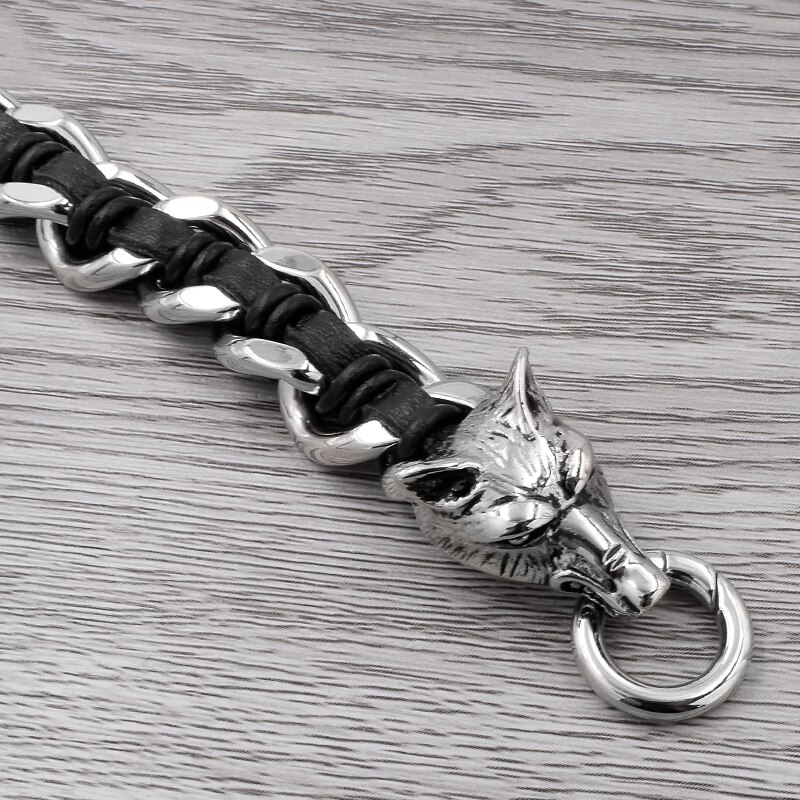 Dubbele Wolf Hoofd Armband Mannen Punk Rock Sieraden 316L Rvs Armband Leer Cubaanse Ketting Cool