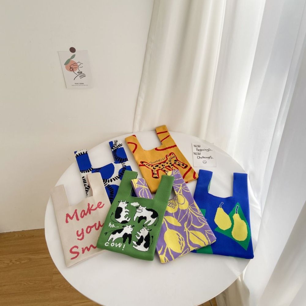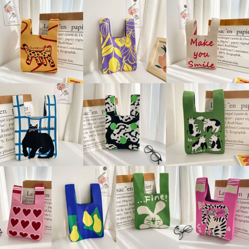 Katten Gebreide Handtas Mode Gebreide Handgemaakte Boodschappentassen Met Hoge Capaciteit Knoop Pols Tas Meisjes