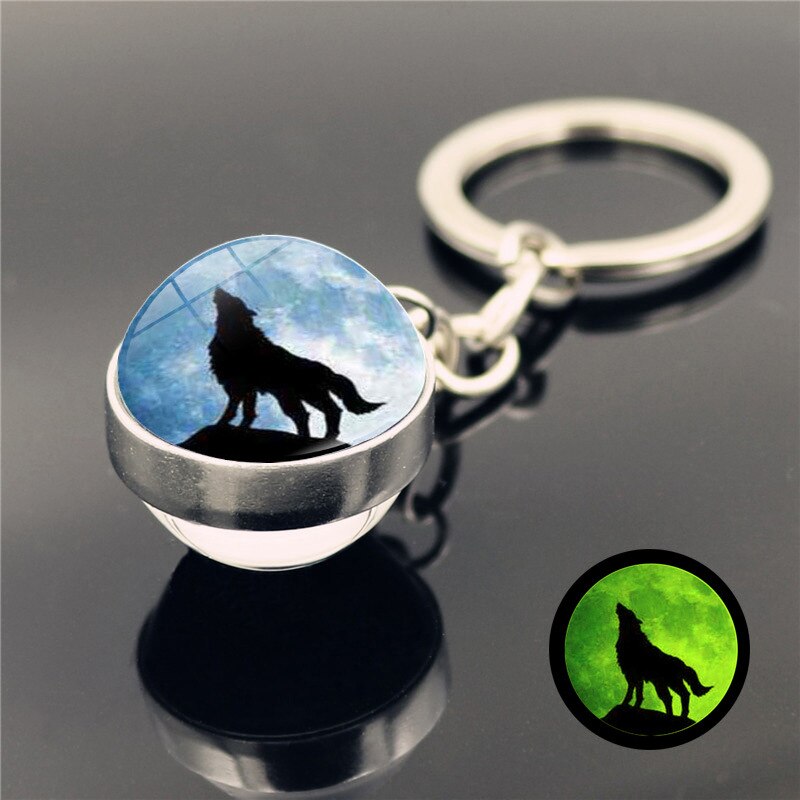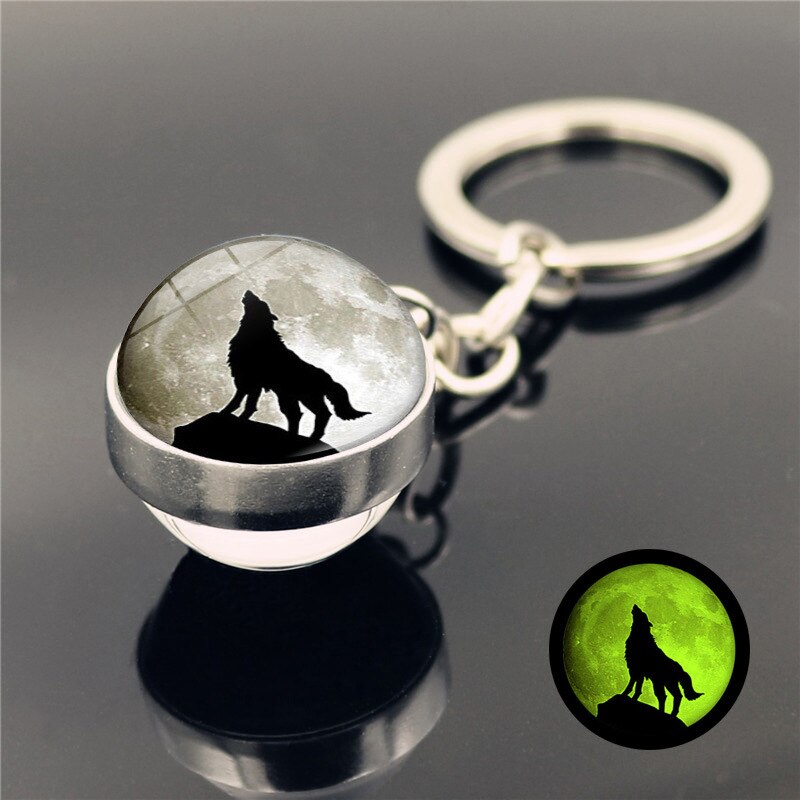 Lichtgevende huilende wolf huilende maan sleutelhanger hanger dubbelzijdige gloeiende glazen bol sleutelhanger hanger