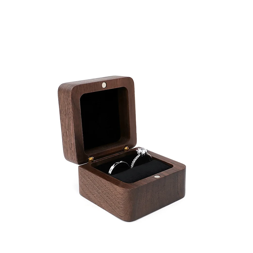Luxe ringdoos van walnotenhout voor het opbergen van enkele/dubbele oorbellen/manchetknopen, een prachtige trouwringdoos voor diamanten.
