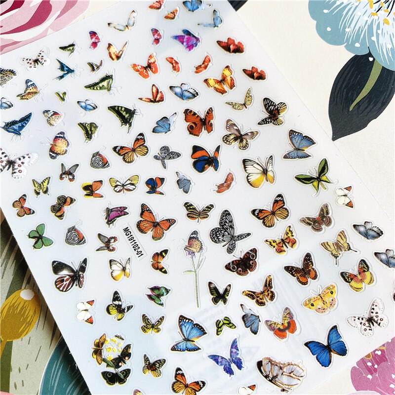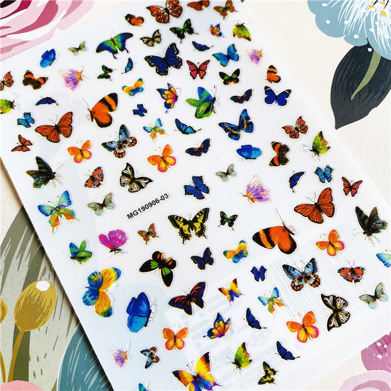 Mg200320-05 kleurrijke vlinders, zwevende vlinders, 3d lijm op de achterkant, nagelsticker, nageldecoratie, nagelkunst, nagelversiering