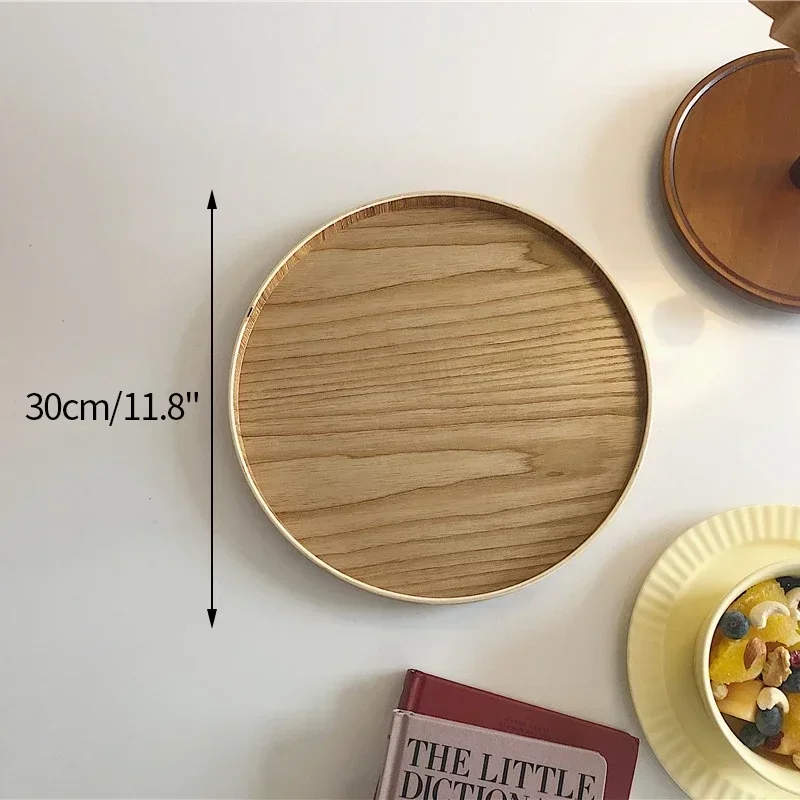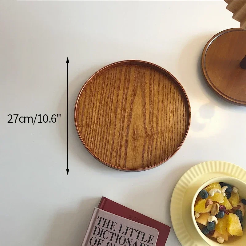 Nordic Decoratief Dienblad Houten Dienblad Retro Ronde Serveerschaal Fruit Dessert Opbergbakken Koffiekopje Mat Pad Home Decor Mohamedajuan
