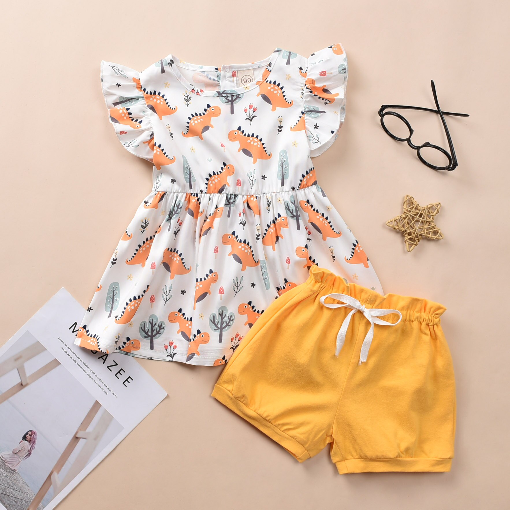 Peuter babymeisje zomerpakje cartoon dierenprint mouwloos jurkje + effen korte broek dinosaurus outfits