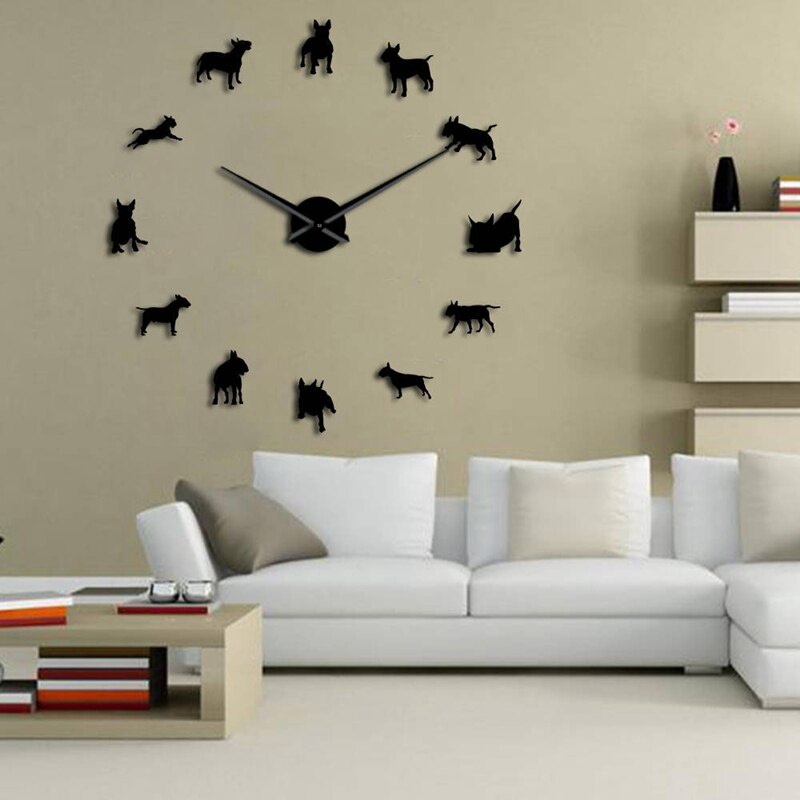 Praktische Bull Terrier Hond Muur Art Diy Grote Wandklok Hond Ras Pug Grote Naald Klok Horloge Pet Shop Decor Voor Bull Terri