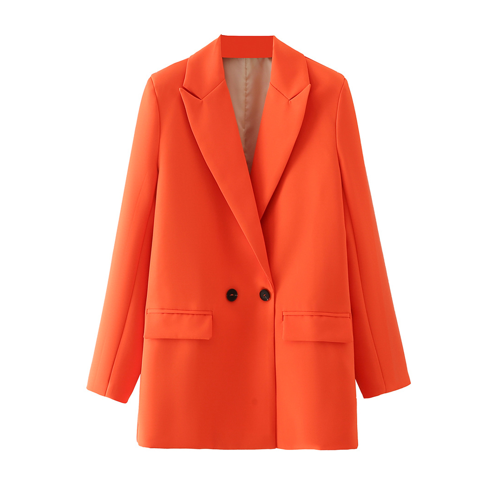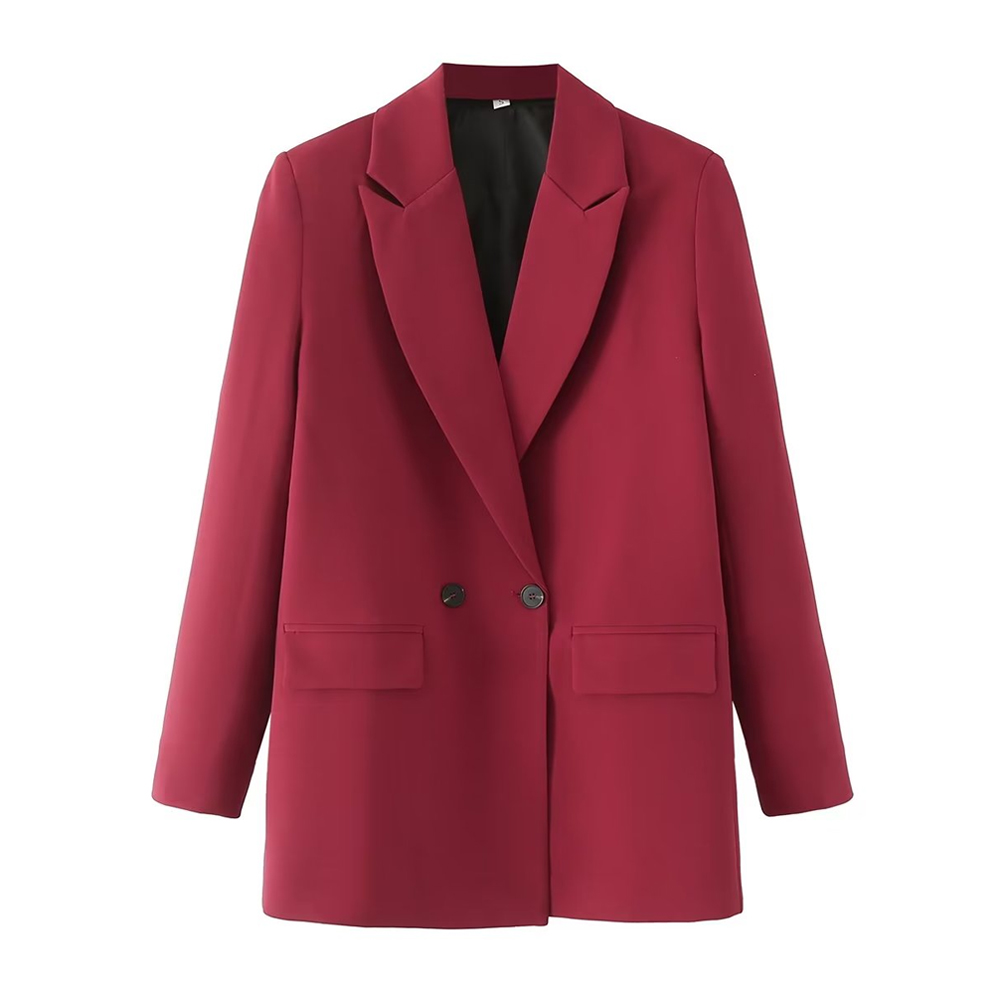 TRZA Vrouwen Chic Office Lady Double Breasted Blazer Vintage Jas Mode Notched Kraag Lange Mouw Dames Bovenkleding Stijlvolle Tops