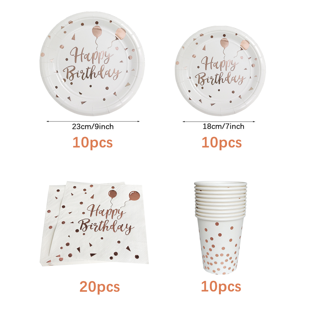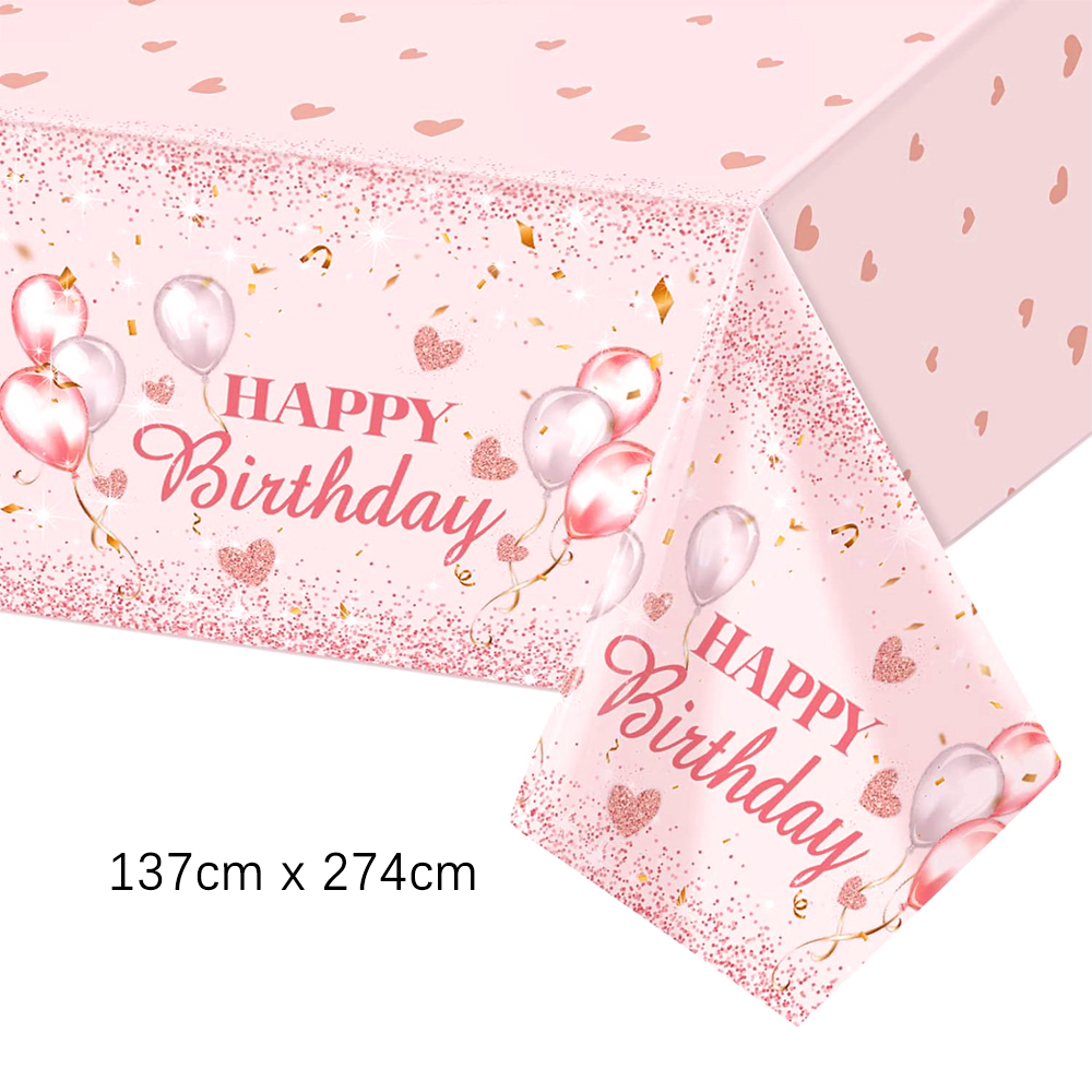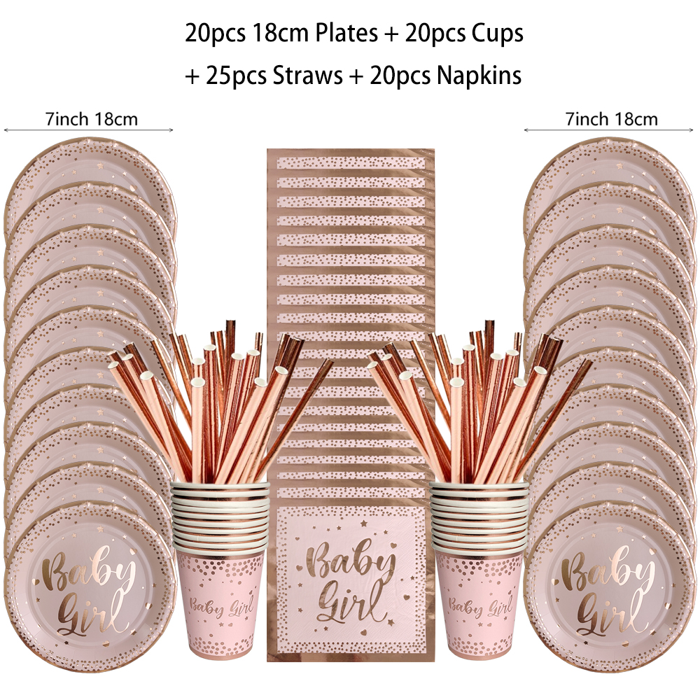 Verjaardag Wegwerp Servies Set Roze Rose Goud Witte Borden Kopjes Servetten Tafelkleed Meisje Verjaardagsfeestje Decoratie Baby Douche