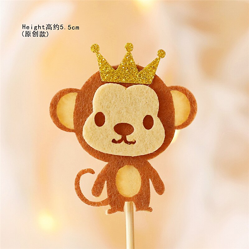 Voelde Dieren Aap Leeuw Giraffe Uil Cake Topper Voor Verjaardagsfeestje Decoraties Bakken Levert Baby Shower Kid Liefde