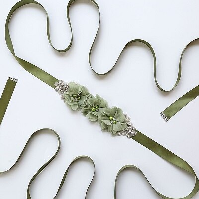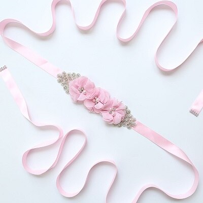Zomer strand bruiloft bloemen riemen voor bruid parel chiffon bloemen riemen sjerpen kristal bruidsaccessoires ceinture mariage